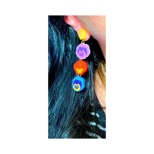 Wonderland Pansies Tiered Acrylic Drop Earrings