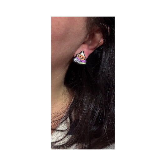 Spooky Pumpkin Bookstack Mug Post Earrings