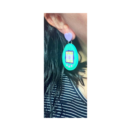 90s Aqua Digital Pet Drop Earrings