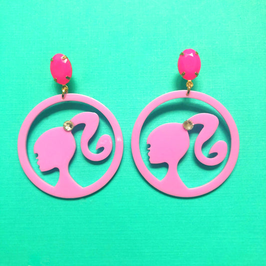 Retro Doll Silhouette Pink Drop Earrings