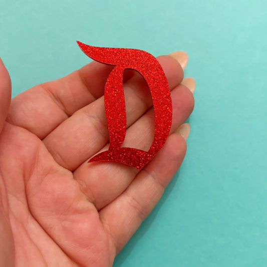 Glitter Red Retro “D” Pin Brooch