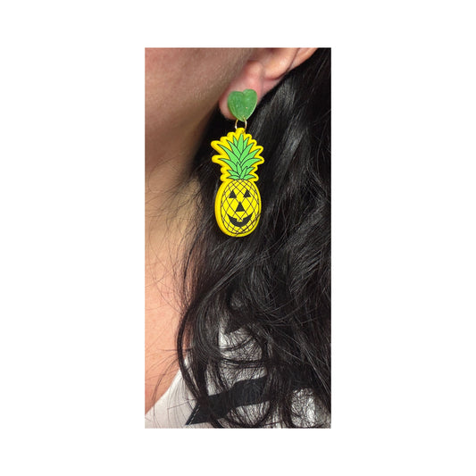 Pineapple Jack-O-Lantern Acrylic Drop Earrings