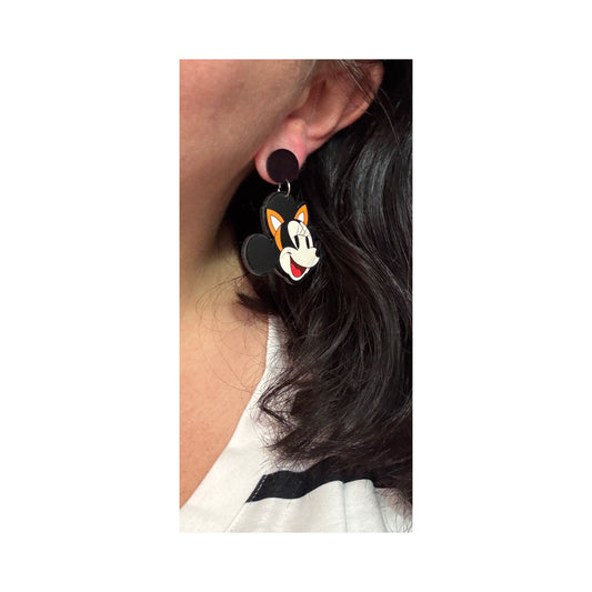 Retro Mouse Cat & Pumpkin Head Drop Earrings