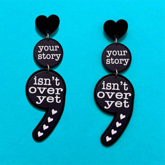 Your Story Isn’t Over Yet Semi Colon Acrylic Drop Earrings