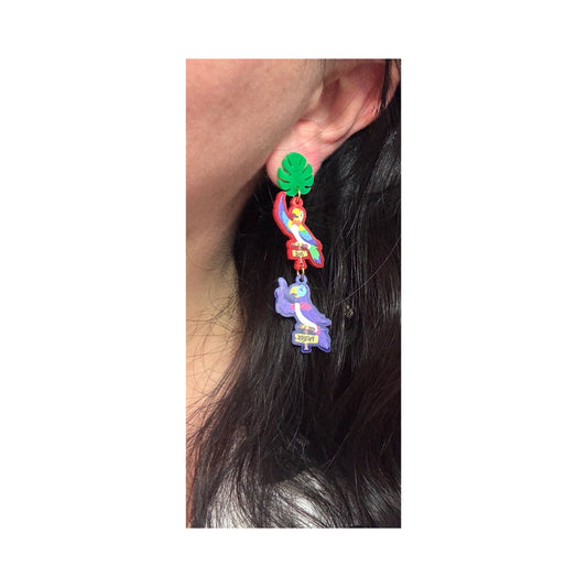 Tiki Birds Tiered Acrylic Acrylic Drop Earrings