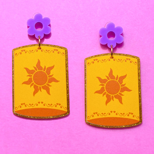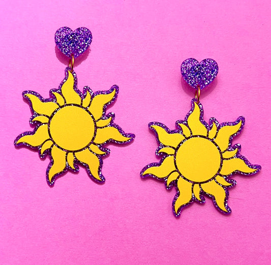 Purple Glitter Tangled Sun Acrylic Drop Earrings