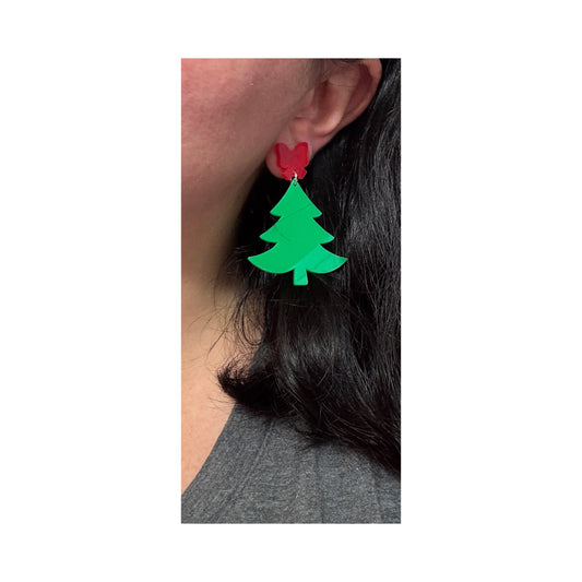Red Bow Christmas Tree Drop Earrings