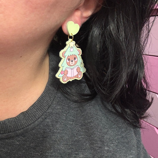 Bookish Bear Tree Drop Earrings