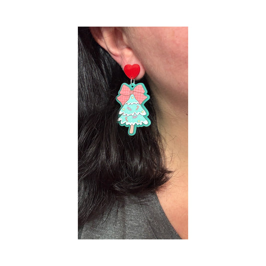 Coquette Bow Christmas Tree Drop Earrings