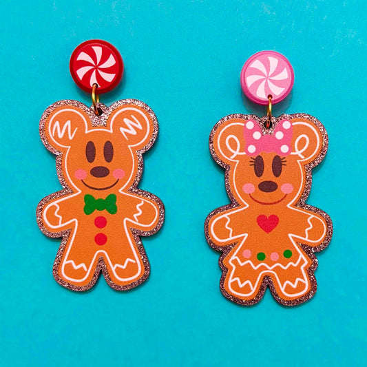 Mouse Sparkle Gingerbread Cookie Acrylic Post Earrings