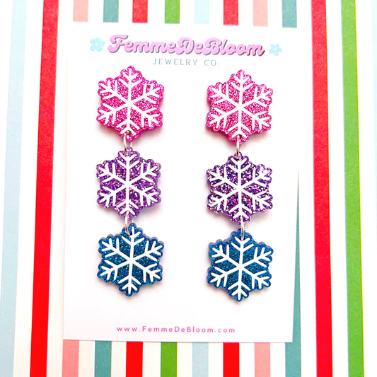 Colorful Glitter Snowflake Tiered Drop Earrings