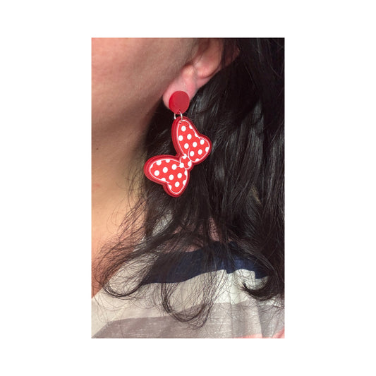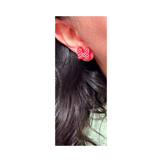 Red & White Polka Dot Mouse Acrylic Post Earrings