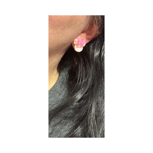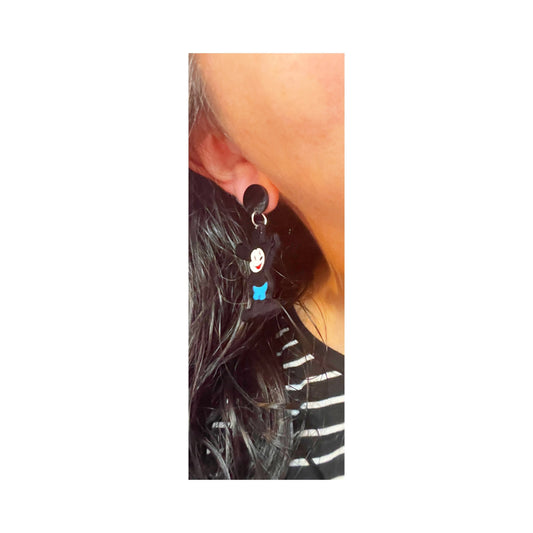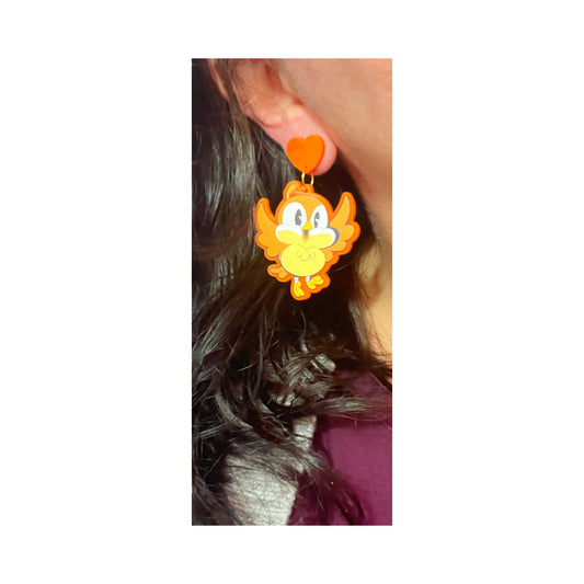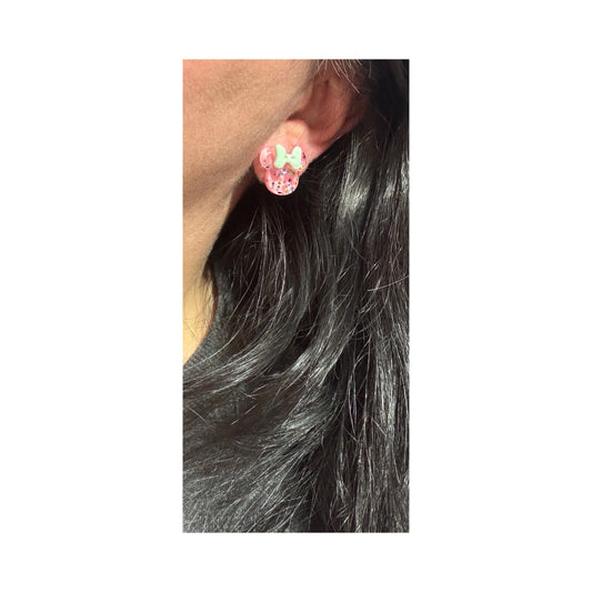 Red Mouse Yarn Pom Pom Hanging Drop Earrings