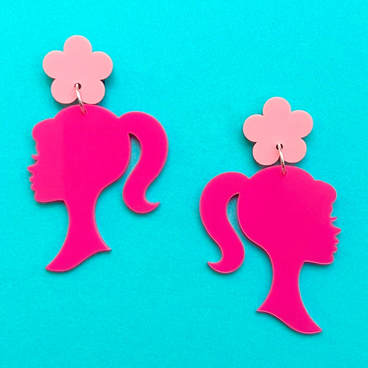 Retro Doll Silhouette Pink Drop Earrings