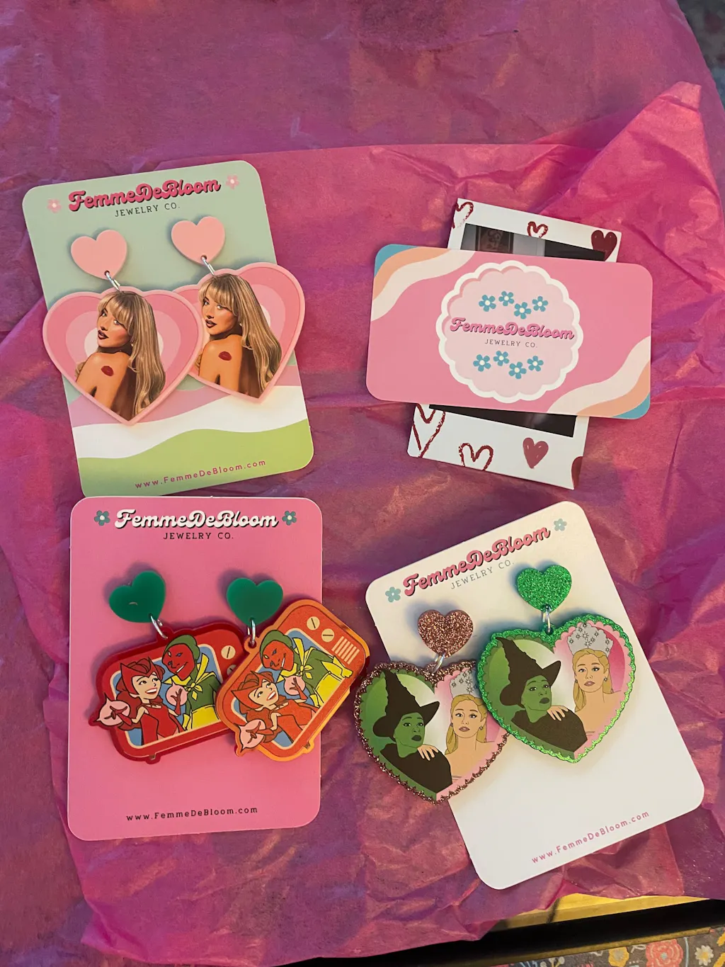 Elphie & Glinda Wicked Heart Sparkle Drop Earrings