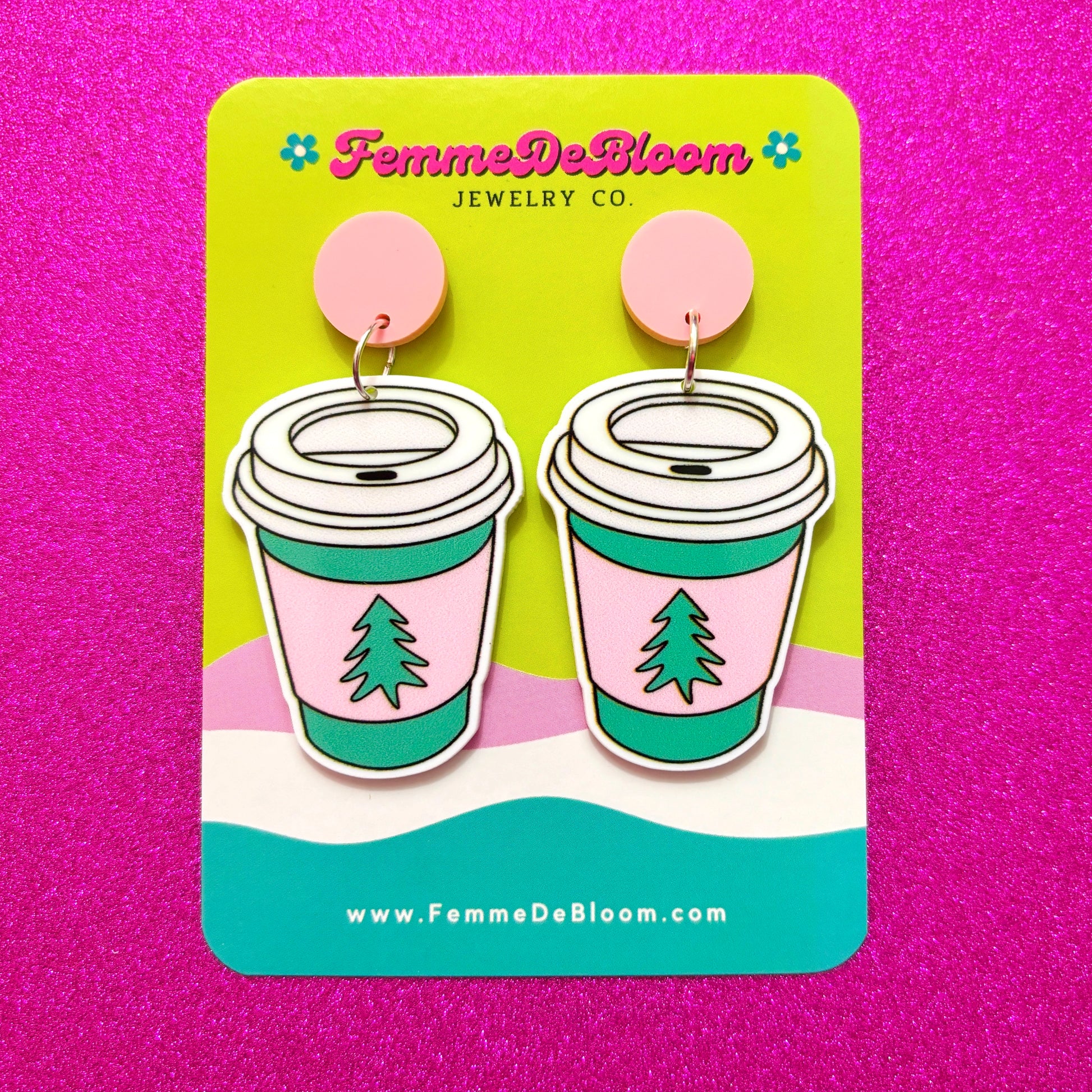FREE GIFT - Pink Christmas Tree Coffee Drop Earrings