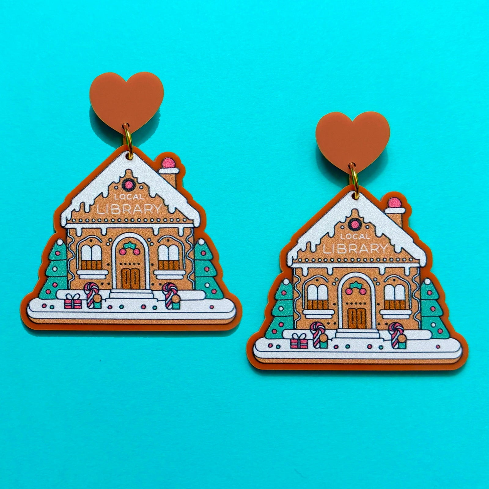 Gingerbread Library Drop Earrings