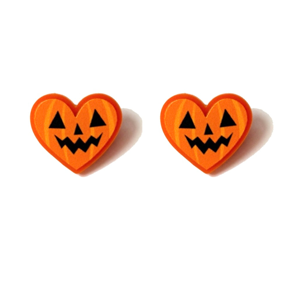 Jack-O-Lantern Pumpkin Heart Post Earrings