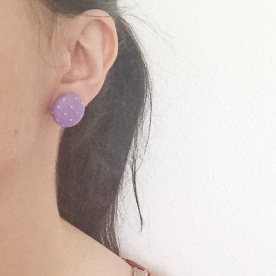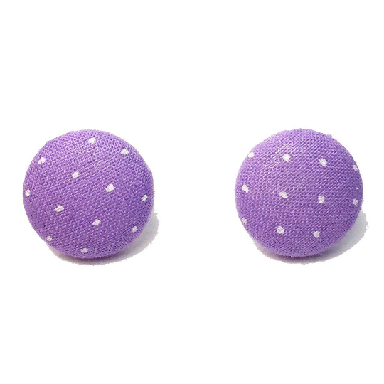 Lovely Lavender Dainty Polka Dot Fabric Button Earrings
