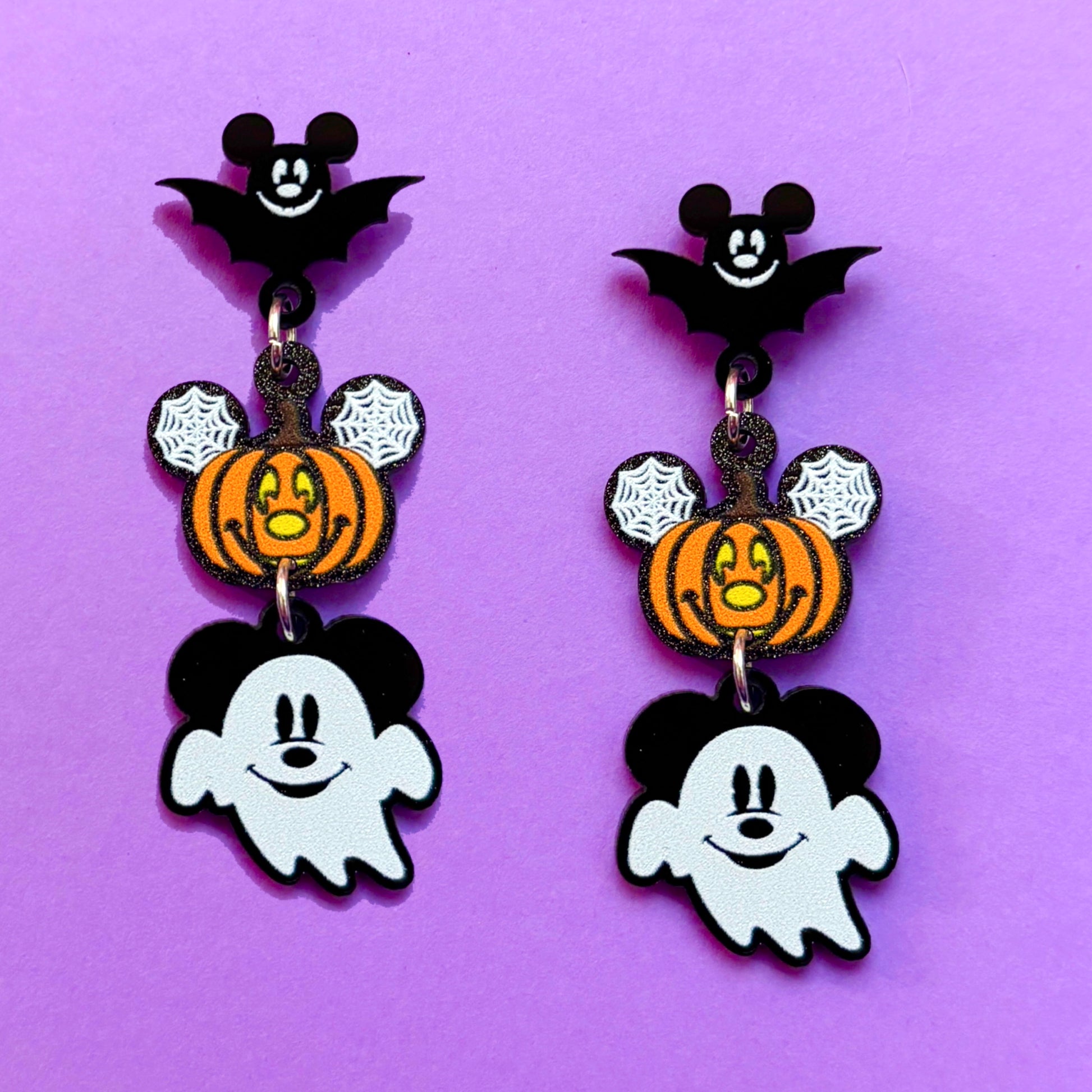 Mouse Bat Pumpkin & Ghost Tiered Drop Earrings