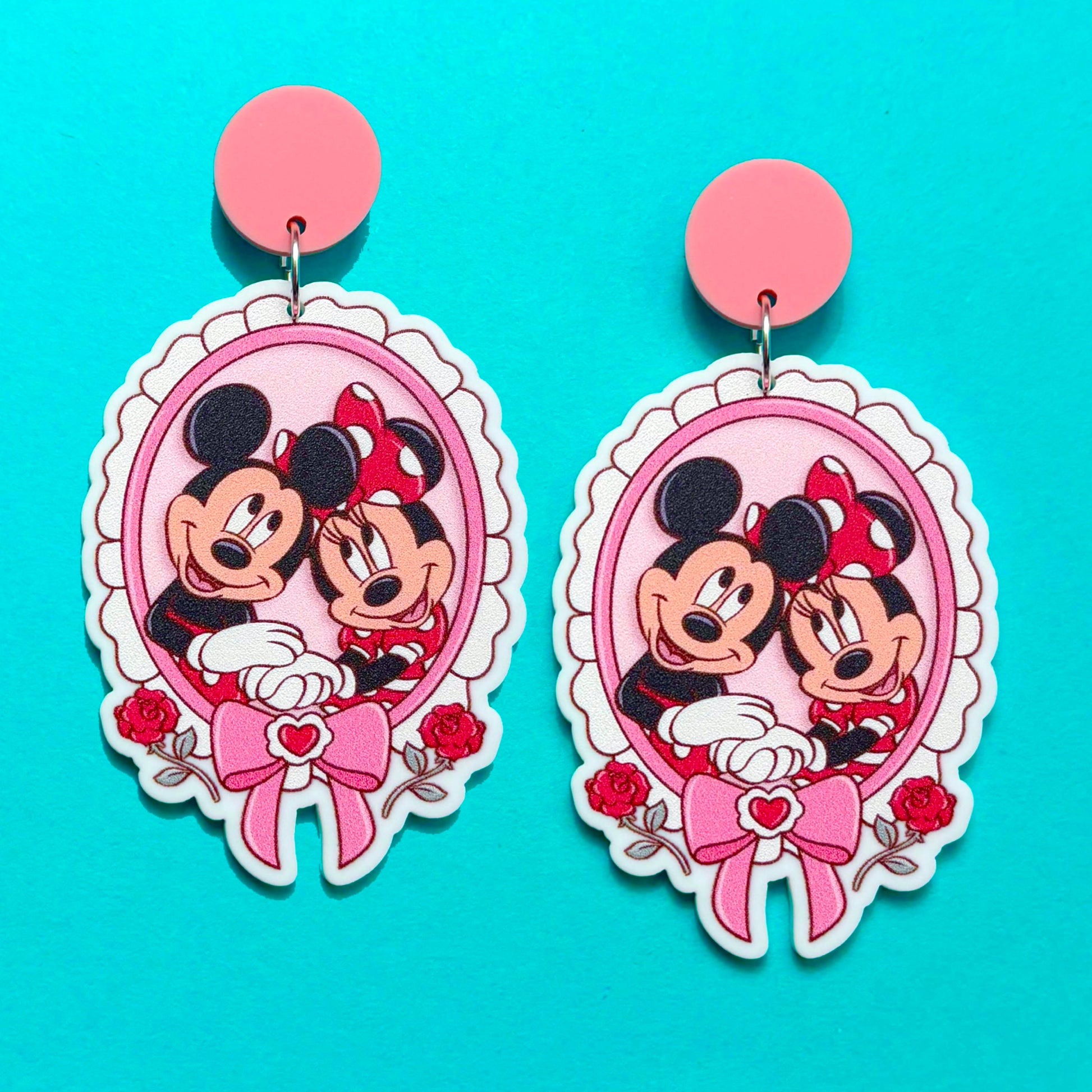 Mouse Couple Sweetheart Cameo Drop Earrings