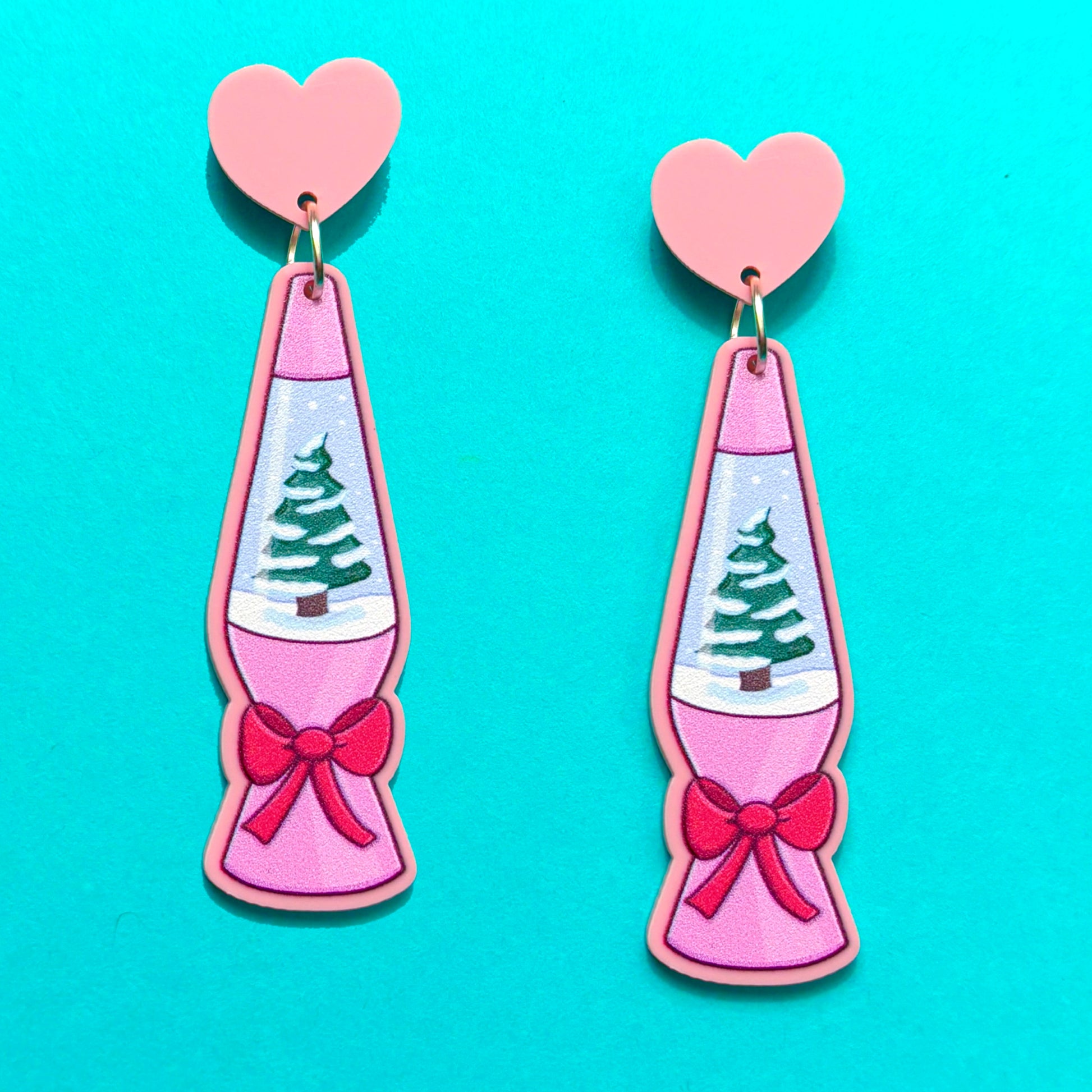 Pink Christmas Tree Lava Lamp Drop Earrings