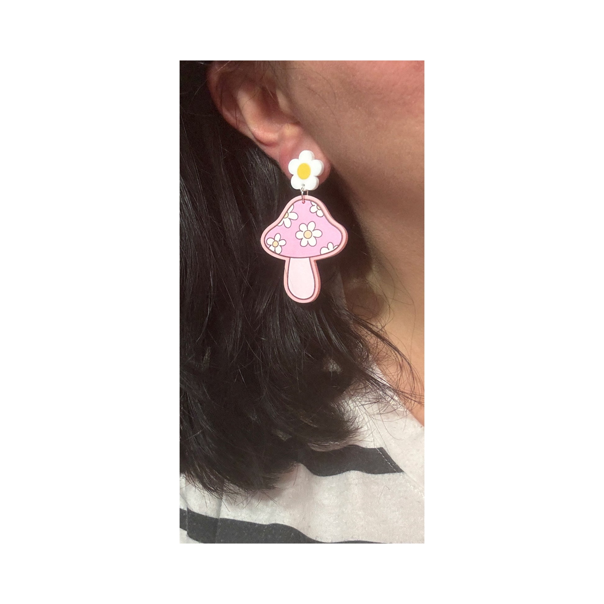 Pink Daisy Mushroom Drop Earrings