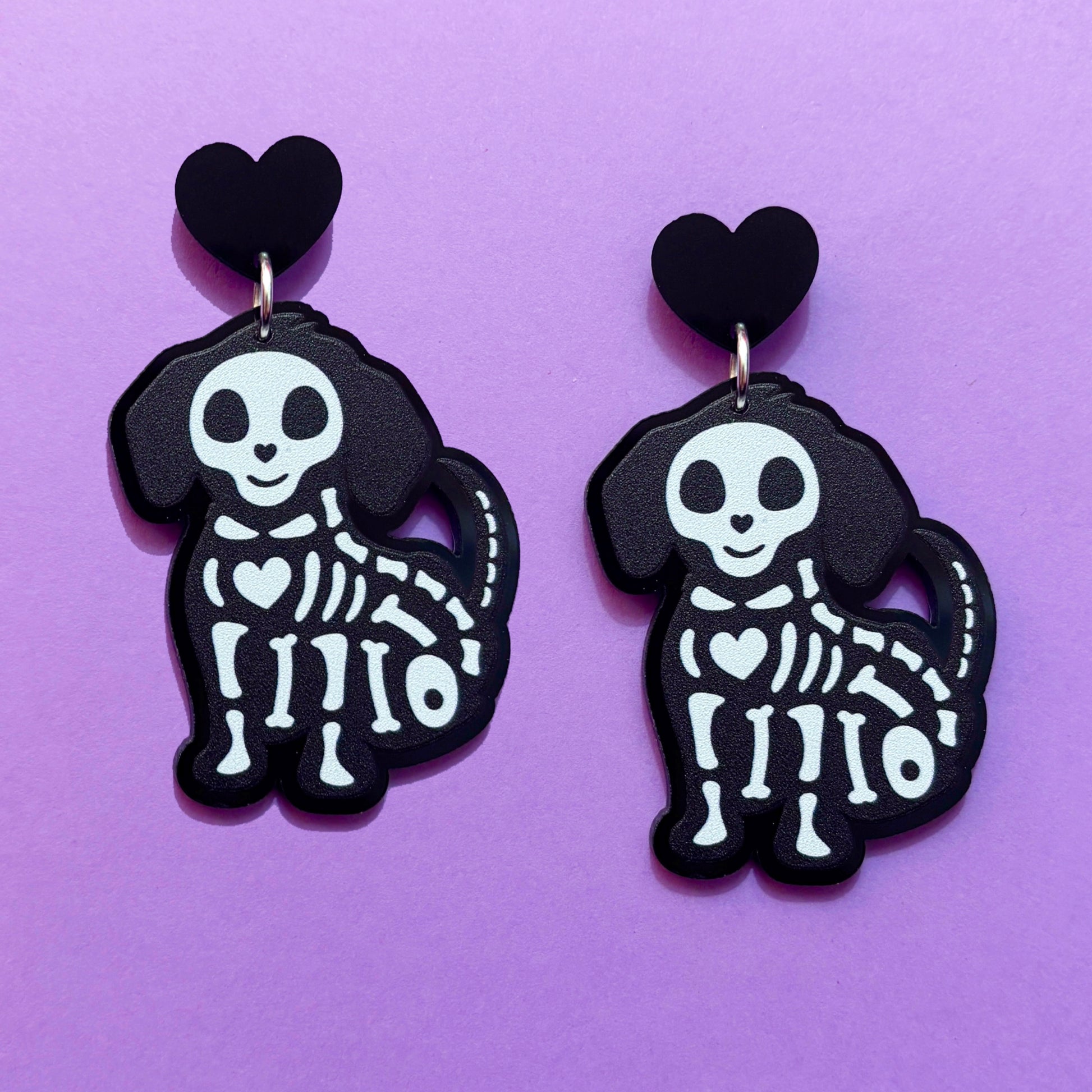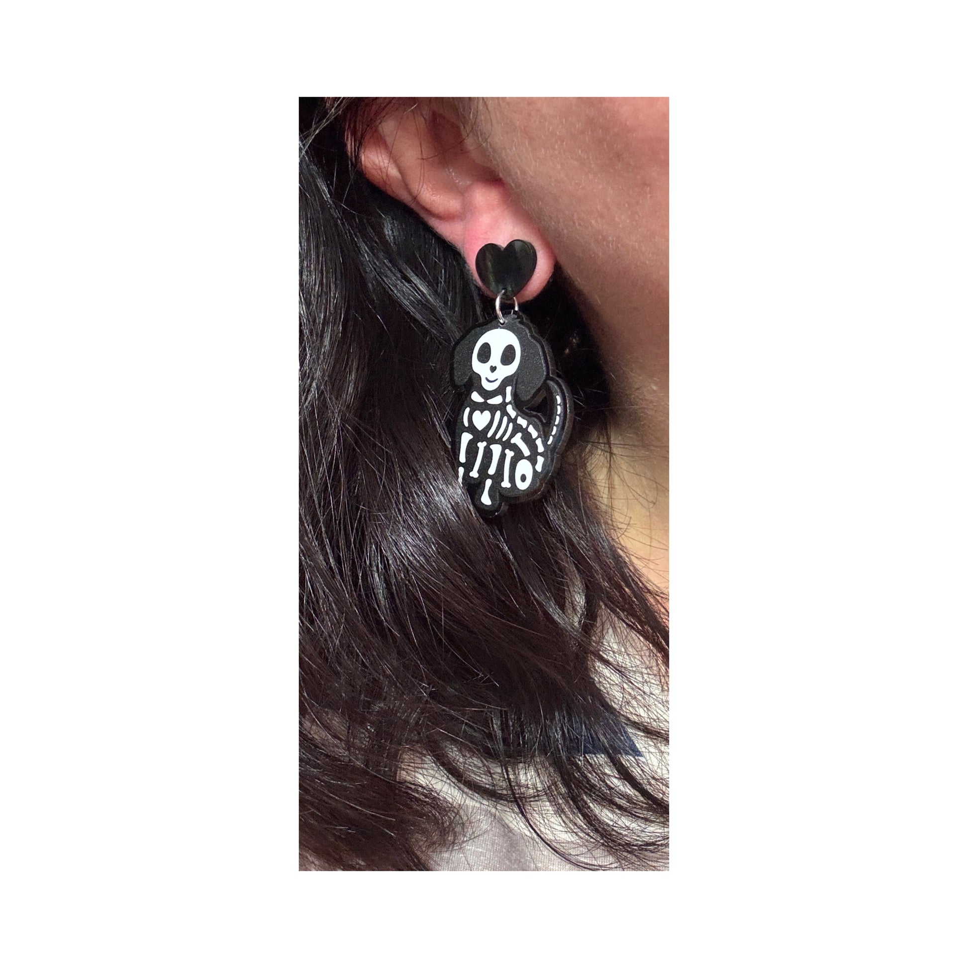 Skeleton Pup Drop Earrings