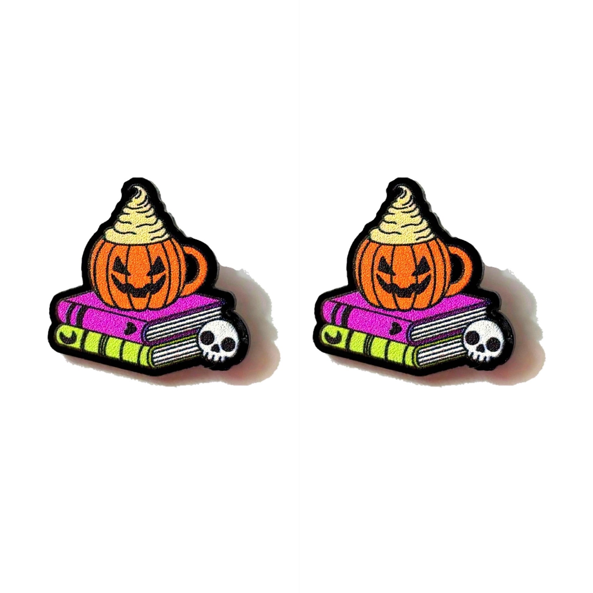Spooky Pumpkin Bookstack Mug Post Earrings
